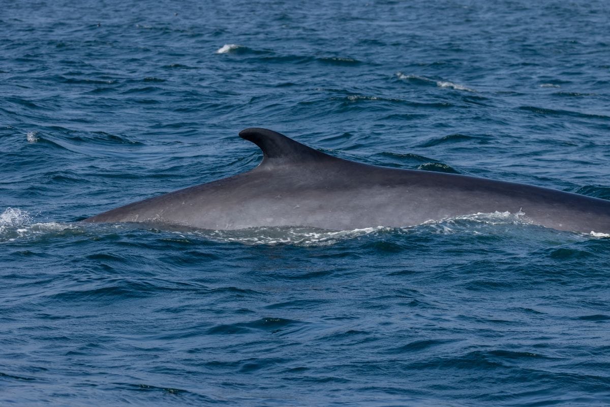 The first species we saw was a fin whale. The fin whale is the second-longest cetacean after the blue whale. They don’t often do the tail flips like humpback whales do, but they’re still pretty cool to see. We got to see one really close to the boat.